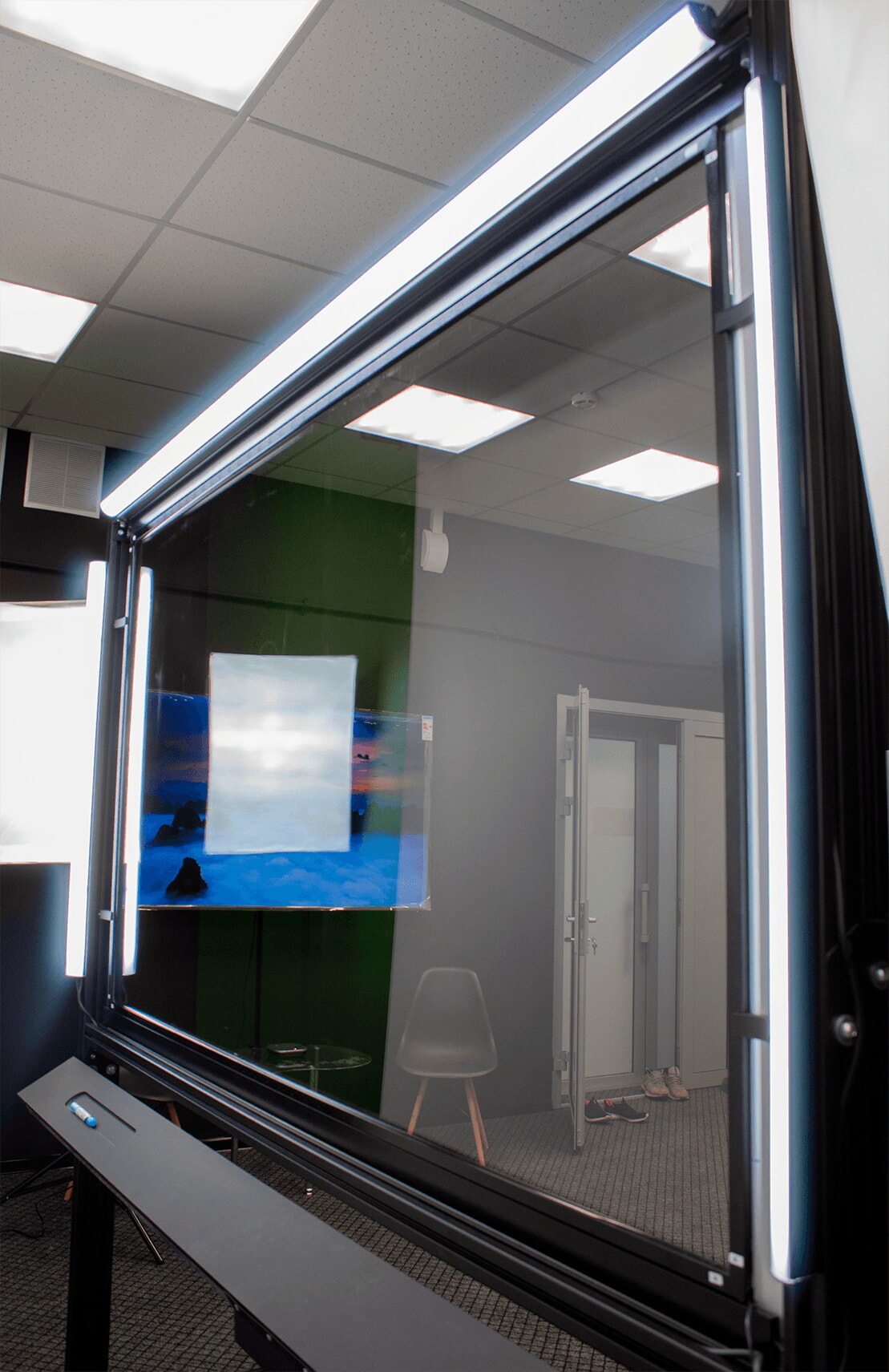 Интерактивная видео-студия станет отличным помощником для записи обращений, лекций и прочих видео, без которых в современном мире не обойтись. Студия включает в себя все необходимые инструменты и программное обеспечение для создания качественного контента и интернет трансляций. Интерактивная прозрачная доска позволяет эффектно подать материал и сделать Ваше видео запоминающимся.
