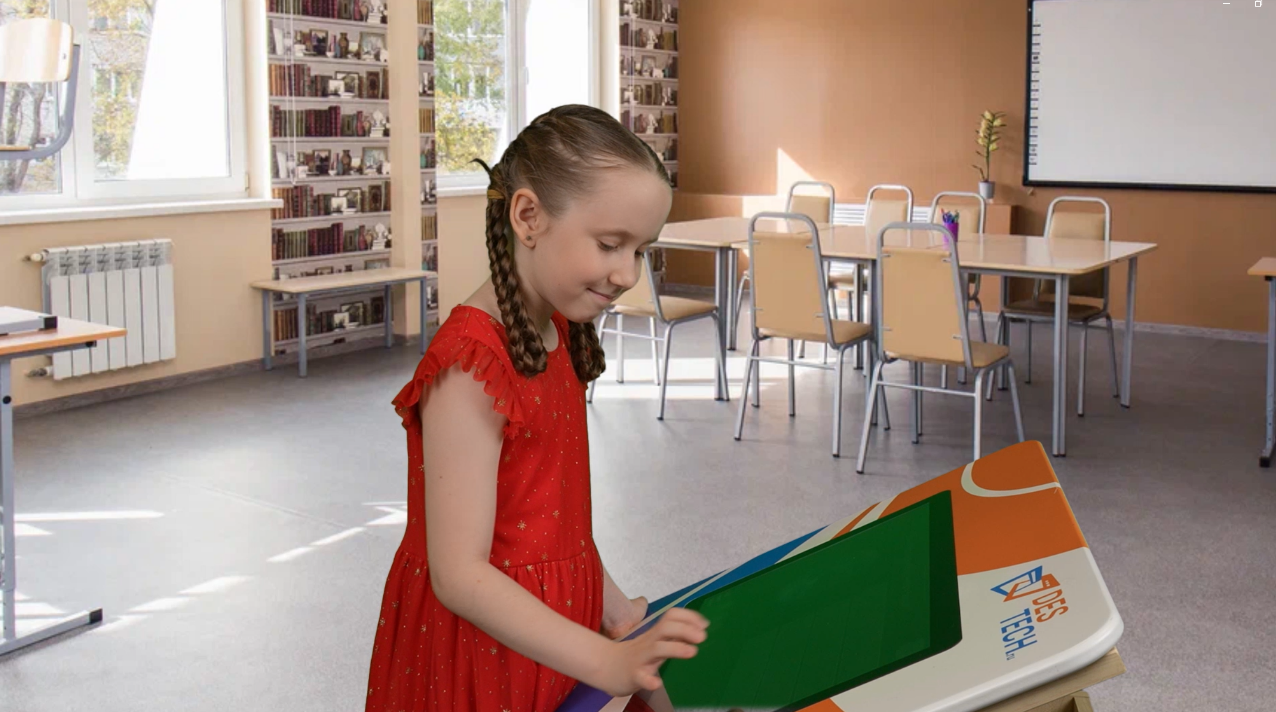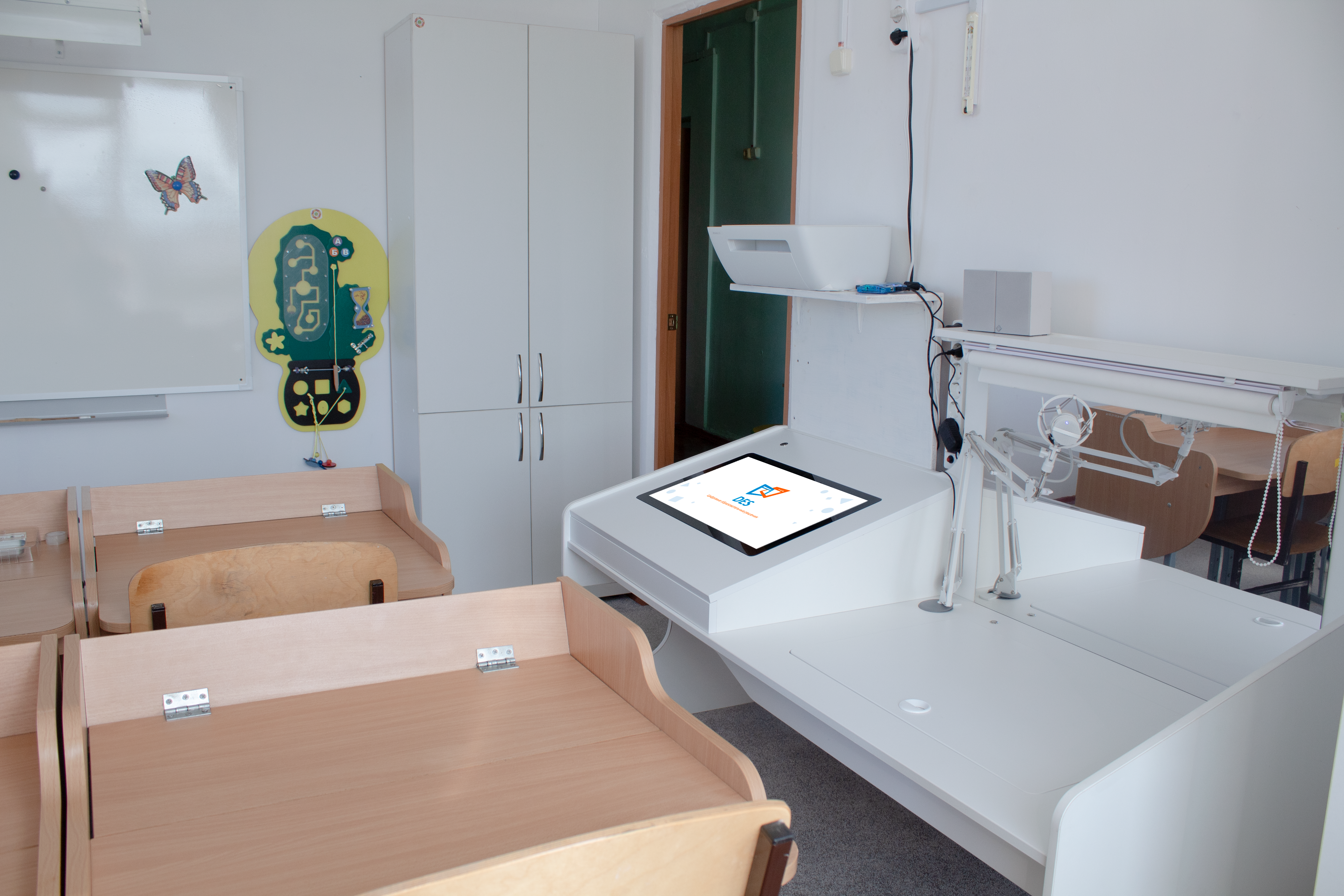 Эта парта оборудована встроенным компьютером, что позволяет устанавливать качественное программное обеспечение. Поверхность стола достаточно велика — когда ребёнок сидит за партой, расстояние до экрана составляет около 30 сантиметров, да и само устройство неподвижно закреплено, что крайне важно. Всё это минимизирует нагрузку на зрение, в отличие от других современных гаджетов. Ещё одна прелесть — возможность писать прямо пальцами, что замечательно развивает мелкую моторику.